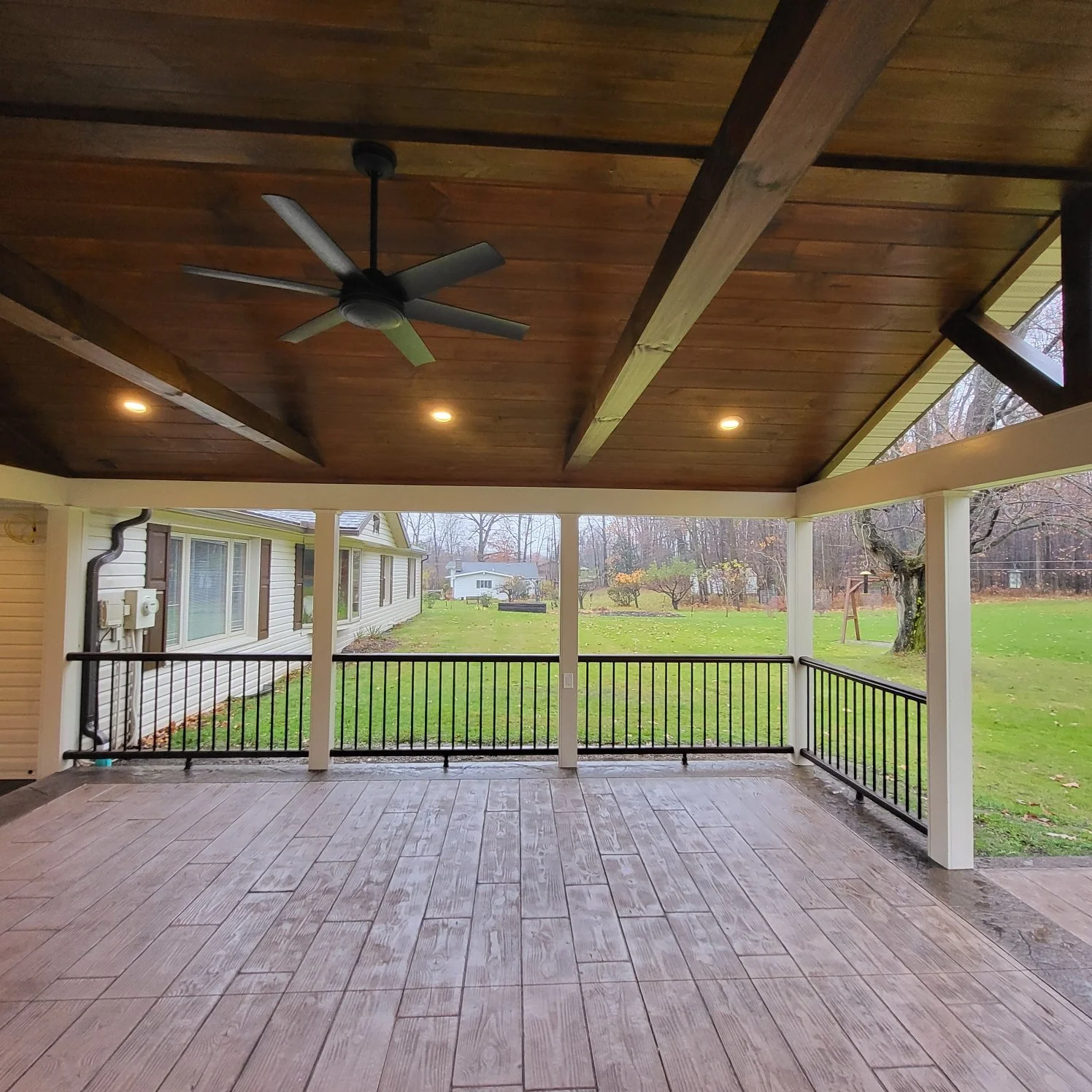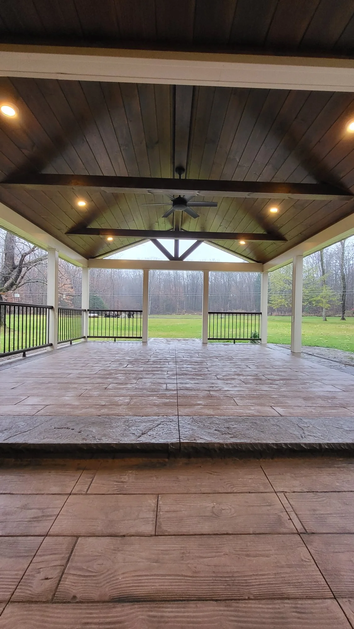 Roof, Ceiling, and Rail by Premier Building Solutions. Stamped Concrete by CDC Concepts.